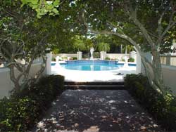- Paver walkway to Pool with Ligustrum Trees forming an Arbor Canopy along the walkway